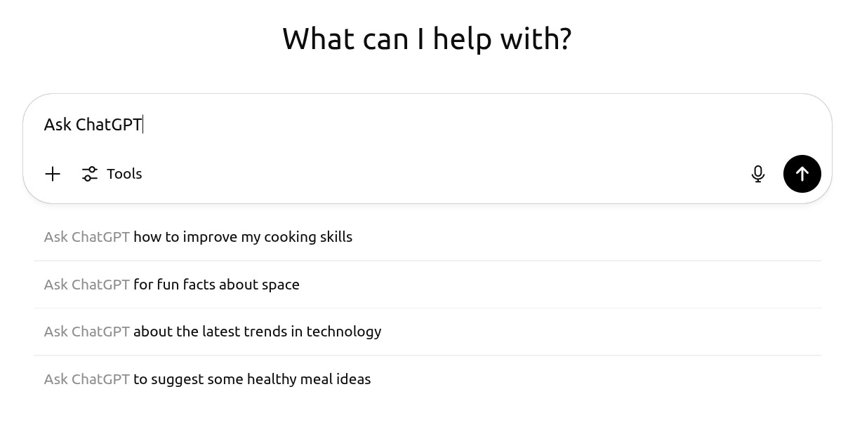 Type your message to ChatGPT in the main chat box and press <Enter> or click the send arrow to begin a conversation with ChatGPT. You can literally type in anything to start. Ask a question, share an idea, begin writing a story... Anything!